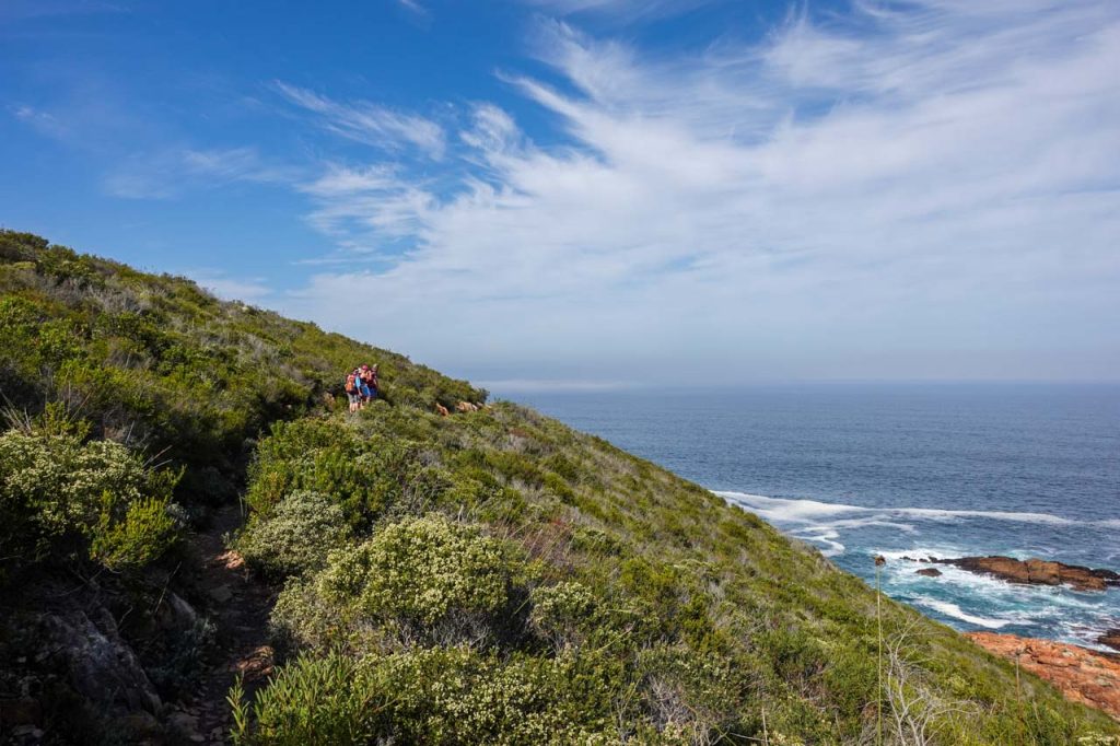 We were a group of 5 and drove through from Knysna in two vehicles and left one at The Point in Mossel Bay below the St Blaize lighthouse and then carpooled to Dana Bay to start the trail from there so this article will also flow in that direction. The trail follows the coast all the way and you can basically always hear, see and smell the ocean. The route is not very undulating as far as climbing or descending as it stays very much on the same level most of the way but the terrain can be more tiring than one would anticipate as there are sections that are sandy and other sections covered in loose rocks and pebbles and for over 13km I would rate this trail at least moderate to hard depending on your fitness level. Comfortable shoes are definitely recommended for the route.