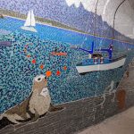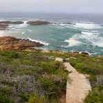 Just over 4km from the start you will pass or cross over a wooden boardwalk that leads down to the sea from the Pinnacle point Clubhouse. This is a good opportunity to head down to the beach if you would like to do so, this is a beautiful bay and we stood here for a while watching dolphins play in the waves. As you step onto this boardwalk, to your left you will see an underground tunnel that leads to the clubhouse, it is well worth stepping inside this tunnel and be mesmerised by the amazing mosaic depicting Mossel Bay’s history and interesting sights of the area, The Iconic Mosaic Tunnel Project. It is truly spectacular.