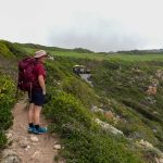 There are many sections along the trail where the footpath winds along above steep sections or even cliffs that fall down towards the coast and the ocean. Be extra careful along these sections and if hiking with children keep this in mind and be careful. Around 10km the coastline forms a beautiful bay and the clift in this area has been a popular rock climbing area with some of the routes dating back to the 80’s. If you’re lucky you’ll see some climbers testing themselves on these rock faces.