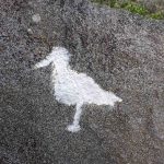 Route markers: Bird silhouette painted in white or green on the rocks.