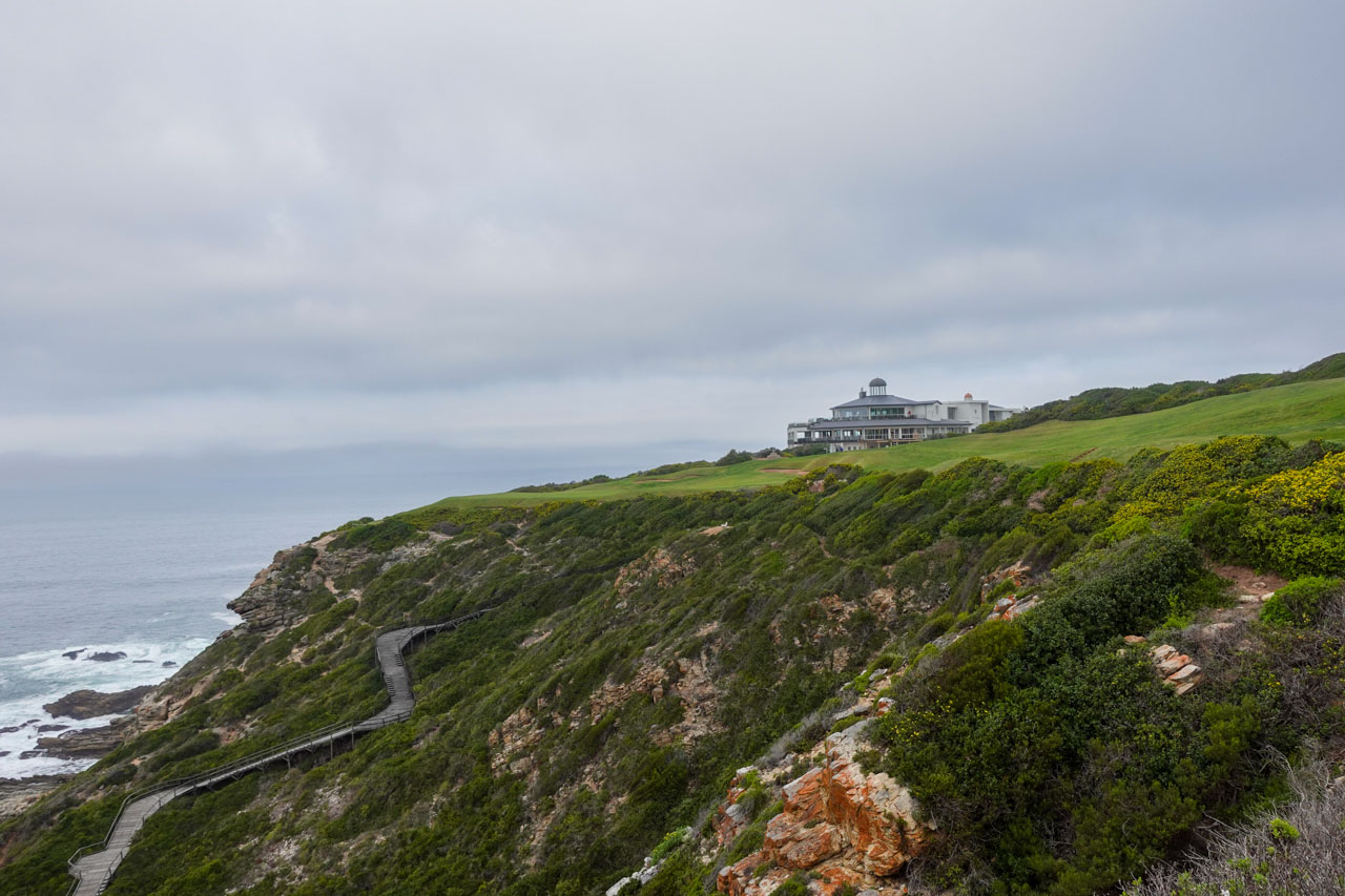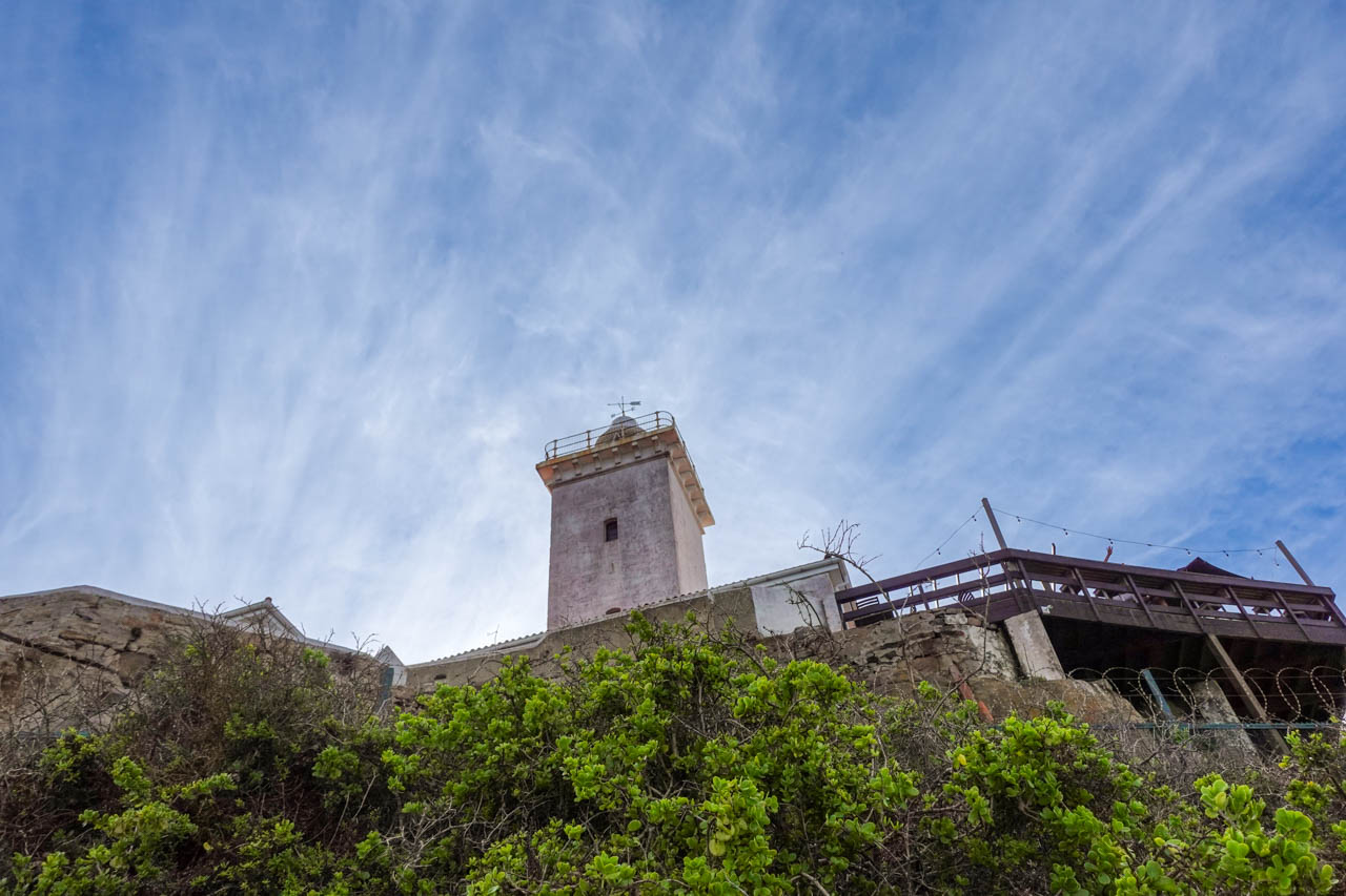 Shortly before reaching the lighthouse there are some wood steps leading up from the path to the left, these go up to a suburb and not to the lighthouse and the point so stay on the footpath. The path starts descending, passing between boulders, past the lighthouse fence and steeper down to the cave below the lighthouse and then into the parking lot at the end of the trail. At the point where you are walking next to the lighthouse’s fence you can keep left and follow a path around the lighthouse to a gate where you can enter the lighthouse complex. There is a restaurant at the lighthouse where you can enjoy a well deserved coffee, drink or meal with a view over The Point and the Mossel Bay bay. If you chose to take this short detour, just retrace your steps back around the complex and then down the path and past the cave to the parking area.