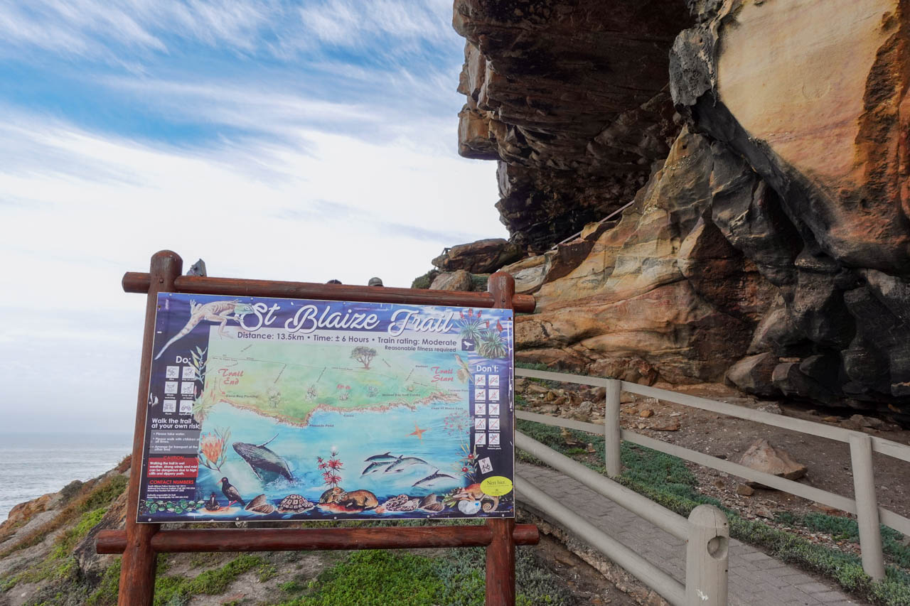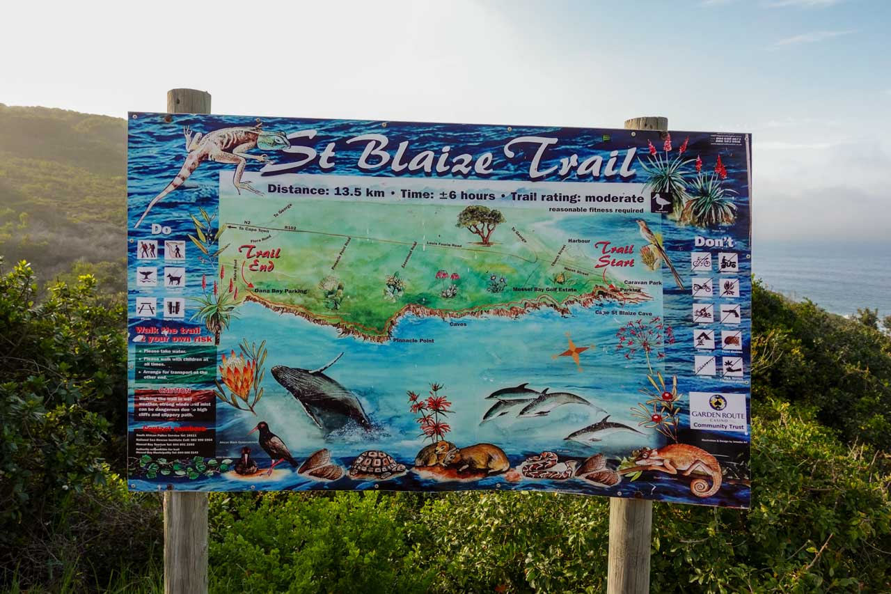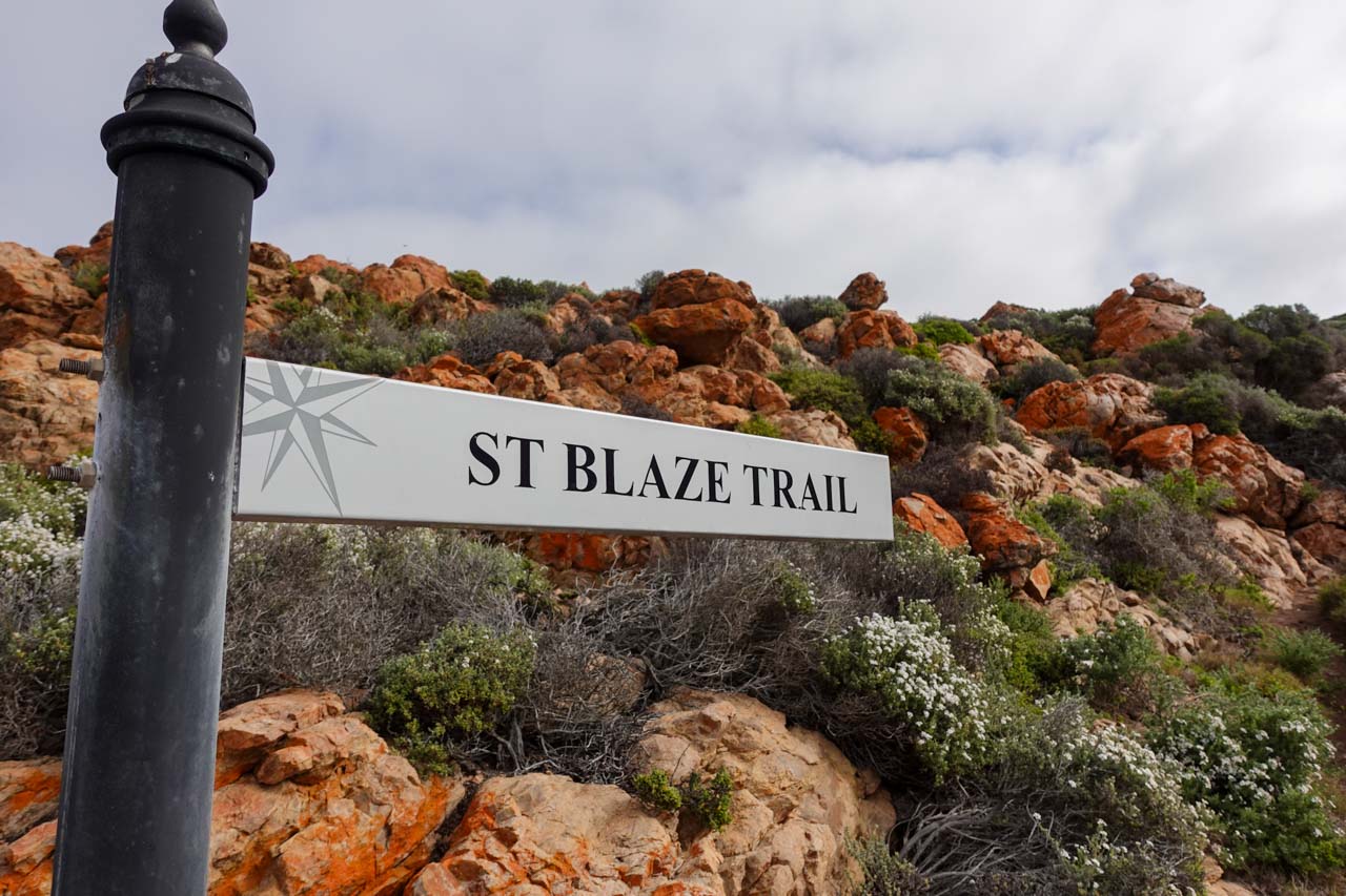 Dana Bay trail head; On the Western side of Mossel Bay, from the Louis Fourie Rd (R102) take the Dana Bay turnoff onto Flora Road. As you enter Dana Bay pass the Astron Energy on the left and turn left into Malva Road at this circle. Follow Malva Road for 1.5km and you will see the St Blaize trail sign and some parking next to the road on your left. There is a larger parking area another 500m down the road from where you can also go down to the beach.