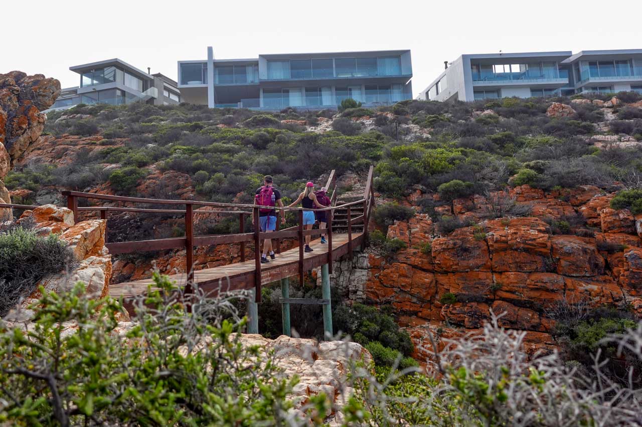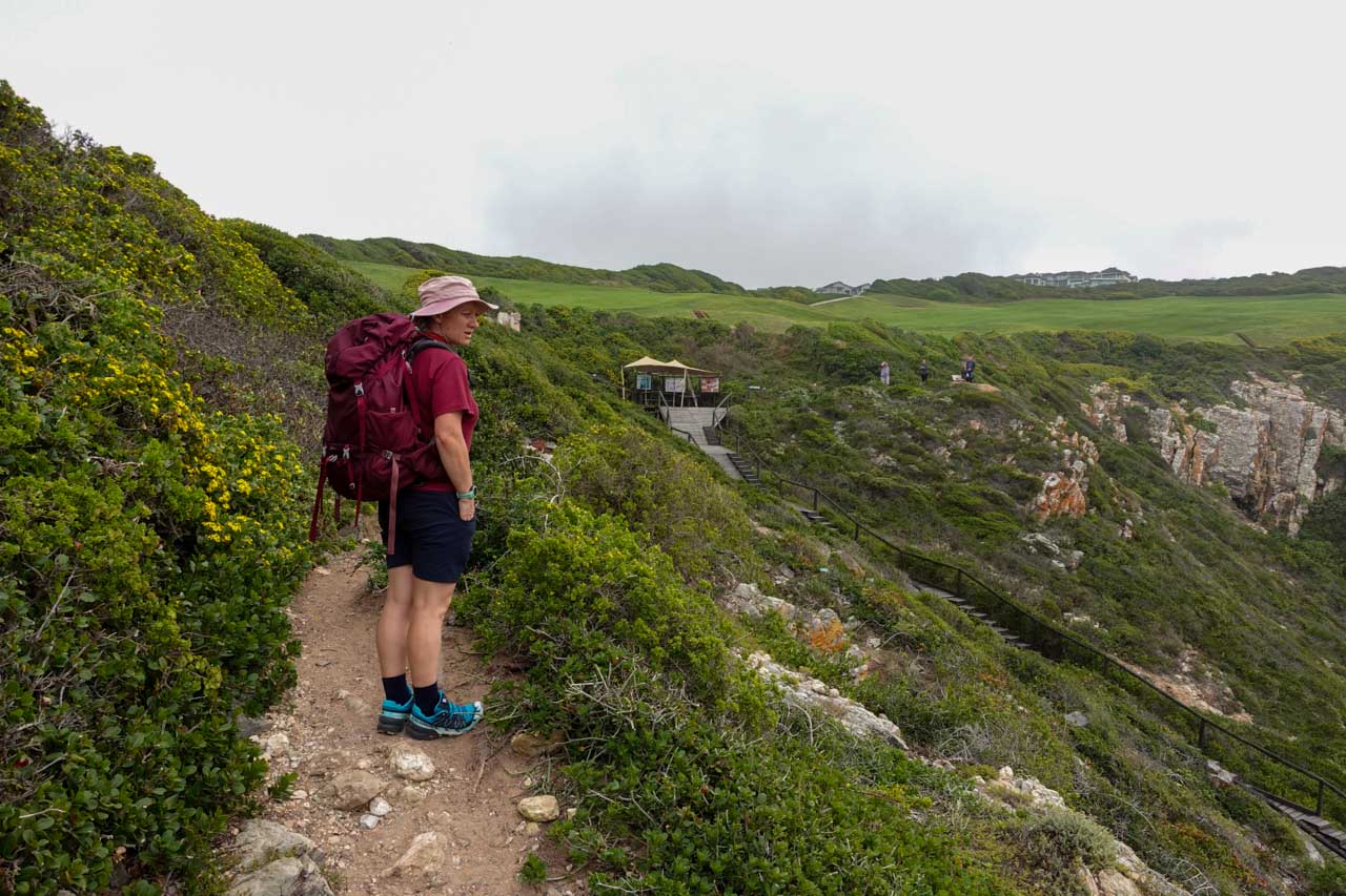 At about 2km from the start you will reach the Oyster Bay Beach and the gate into Pinnacle Point, you are required to sign in at this gate but this was quick and easy and there was no cost when we did the trail (May 2025). This section of the trail still follows the coast on your right but you now also have the Pinnacle Point estate and golf course on your left and you often get to see a game of golf unfold as you walk along the trail.