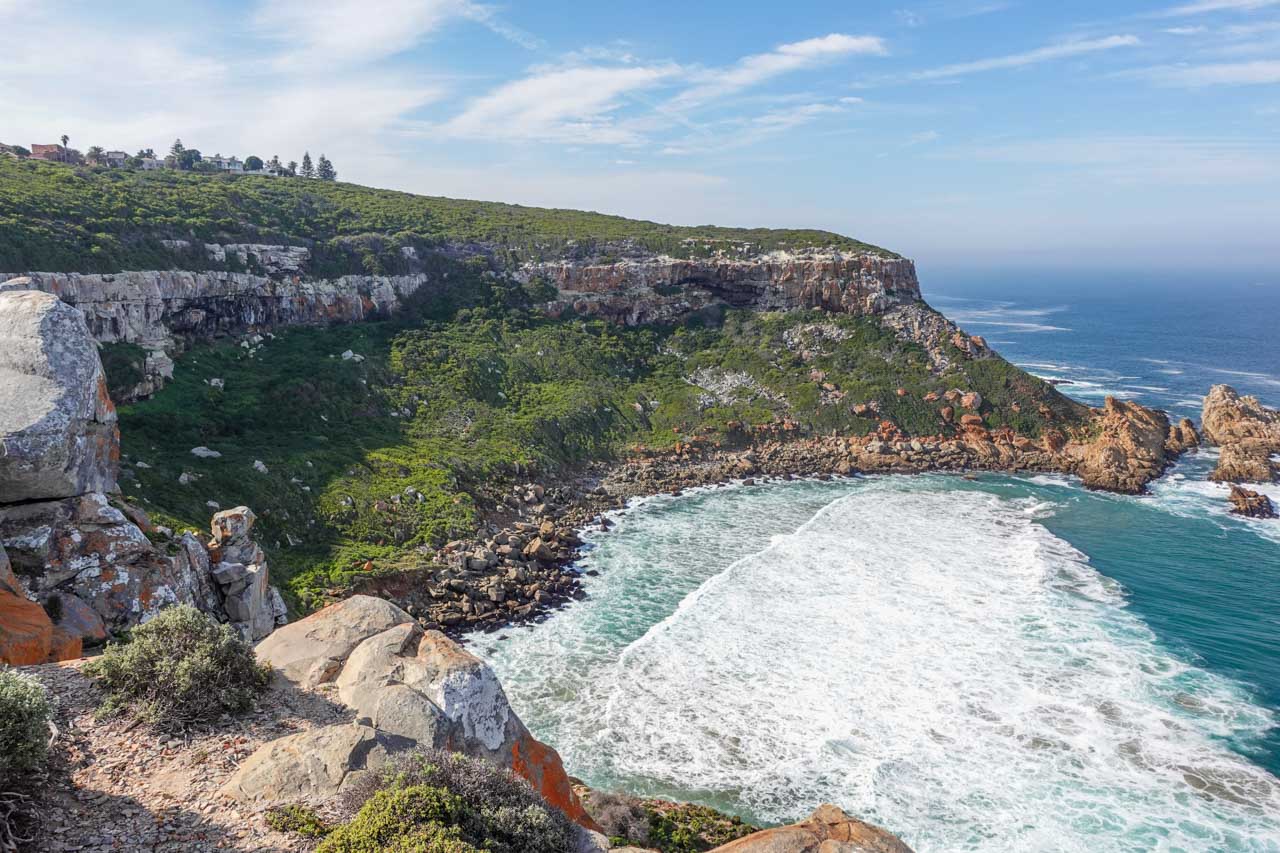 Around the half way mark you will reach another gate where you will sign out again and exit the Pinnacle Point estate. The trail continues along the coast and for a while the houses and developments are a bit further away and the fauna and flora abound. There is a variety of plant and bird life to be seen and even some animals, we saw some buck footprints in the path and there were quite a few rock hyraxes along some sections as well. You also have a good chance to spot some dolphins and, depending the time of year, you could possibly also see some whales so take some time to gaze out to sea when stopping for water or a snack.